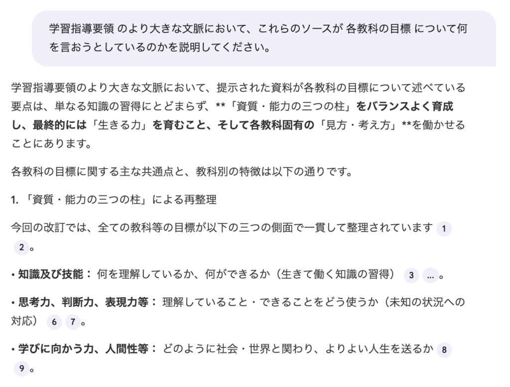 しかしNotebookLMは違います。あなたが読み込ませた参考書やPDF、Webページだけを情報源にして答えてくれます。