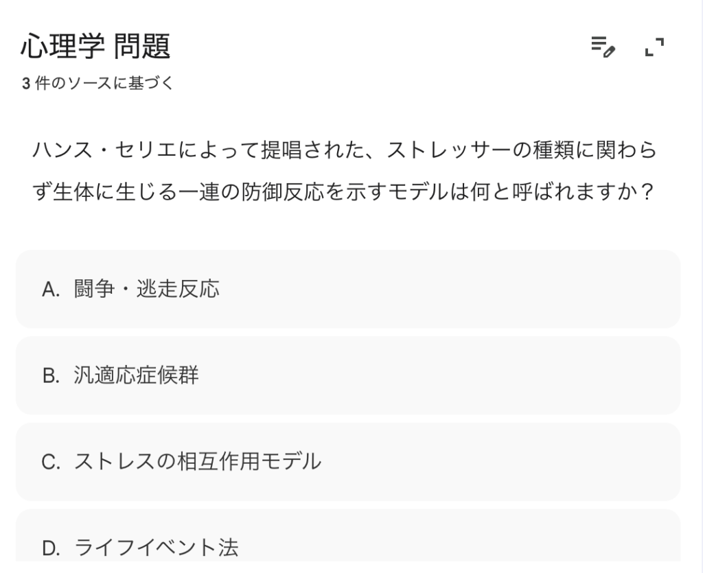 ChatGPTのように一般論ではなく、あなたの資料に基づいた回答が返ってくるので、試験対策に直結します。